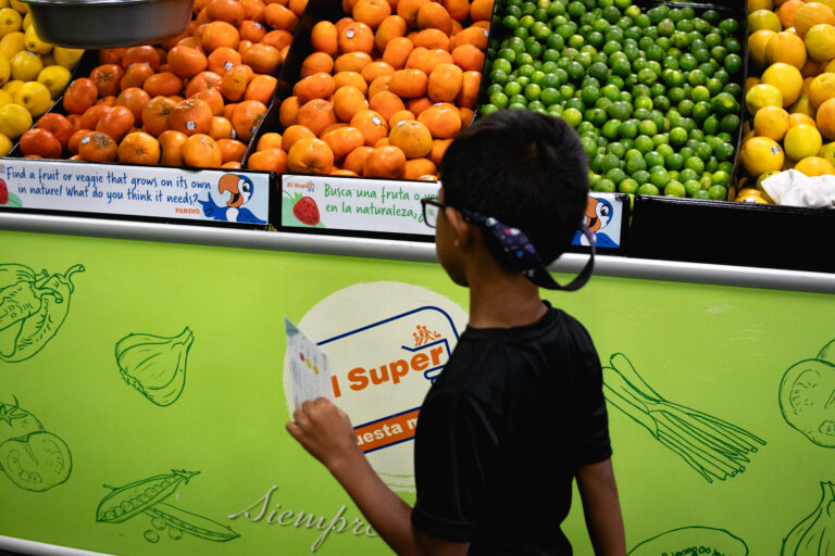 Part of the Playful Learning initiative in Santa Ana, Supermarket Speak at Northgate Market embeds STEM prompts throughout the grocery store, inviting children and caregivers to count, compare, measure, and explore patterns while shopping together.