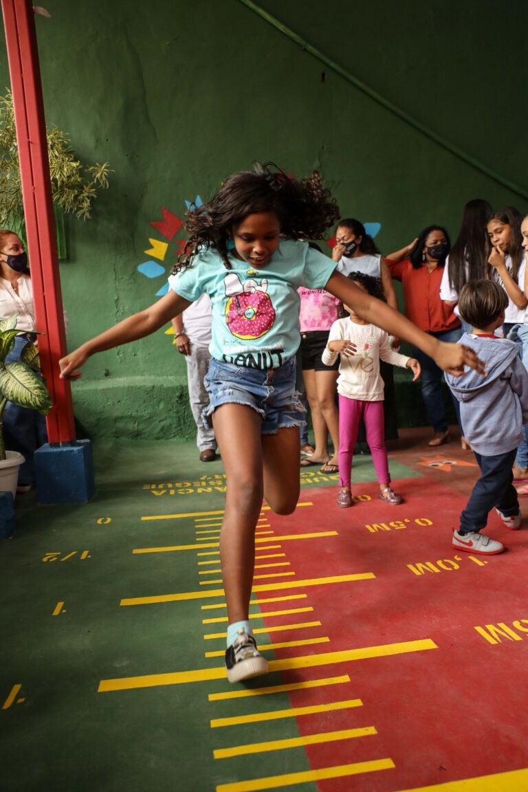 Play Friendly Communities in Rio de Janeiro and São Paulo transformed sidewalks and plazas into playful learning spaces, inviting families to read, play, and connect together.