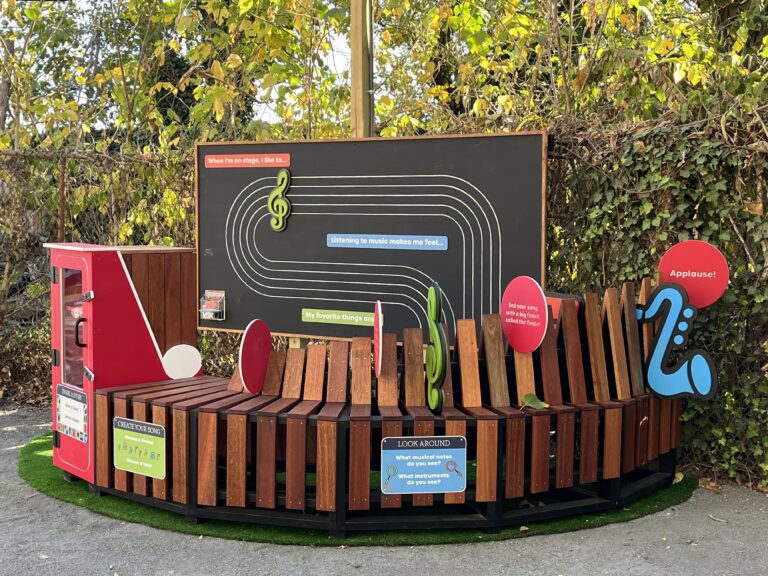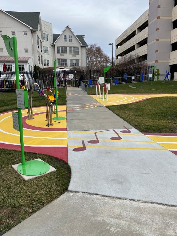 Part of KABOOM!’s Play Everywhere Philadelphia grant, Come Play with RMHC Philly transforms the courtyard at St. Christopher’s Hospital for Children and the Ronald McDonald House Charities into a sound garden oasis designed to spark creativity, rhythm exploration, and musical innovation for children and families.