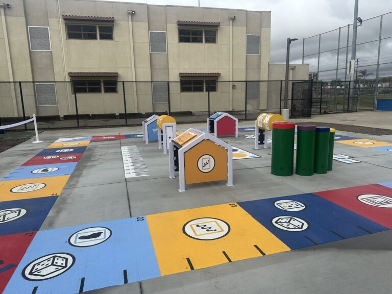 Part of the Playful Learning initiative in Santa Ana, Parkopolis is a life-size board game that encourages STEM language use, caregiver-child interaction, and physical activity through movement-based challenges and collaborative play.