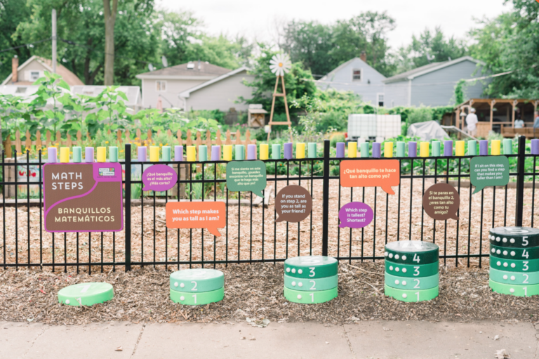 Part of Playful Learning Illinois, the Math Steps installation in Aurora transforms an everyday walking path into an active math experience, using colorful prompts and number challenges to encourage children and caregivers to count, compare, and think mathematically as they move.