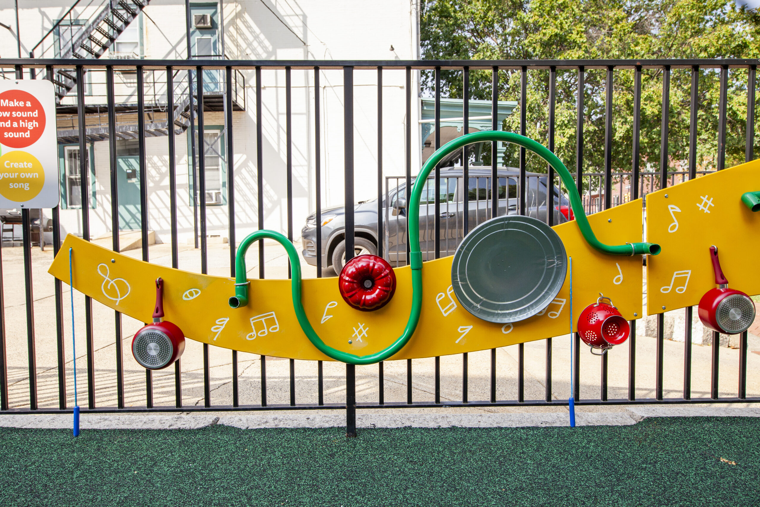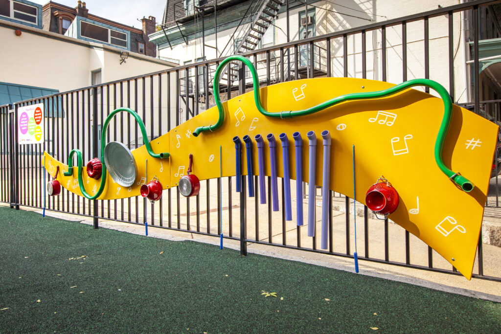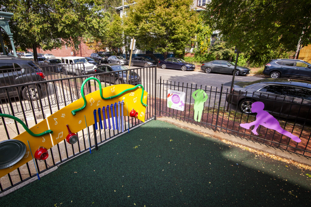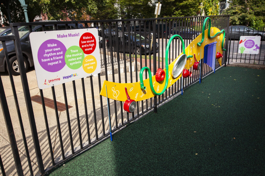 As part of HopePHL, the Baring House installation introduces both an indoor sensory wall and outdoor musical Playful Learning elements designed to engage children and caregivers across multiple environments. Together, these features create layered opportunities for hands-on exploration and meaningful interaction.