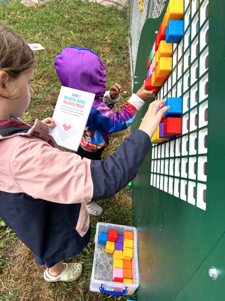 The Esperanza installation nurtures communication by engaging families in bilingual prompts that spark conversation and storytelling in English and Spanish. It fosters confidence as children see their culture and language reflected in a public space, reinforcing belonging and pride in their neighborhood. The installation also encourages creative innovation, inviting children to interact with their environment in playful and imaginative ways. Together, these experiences turn an ordinary fence into a meaningful opportunity for joyful learning and community connection.