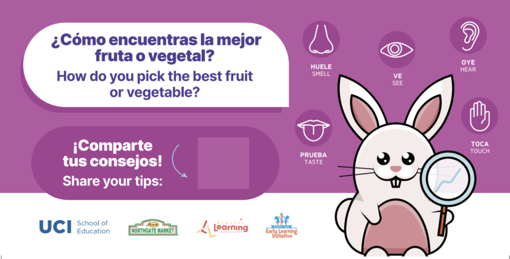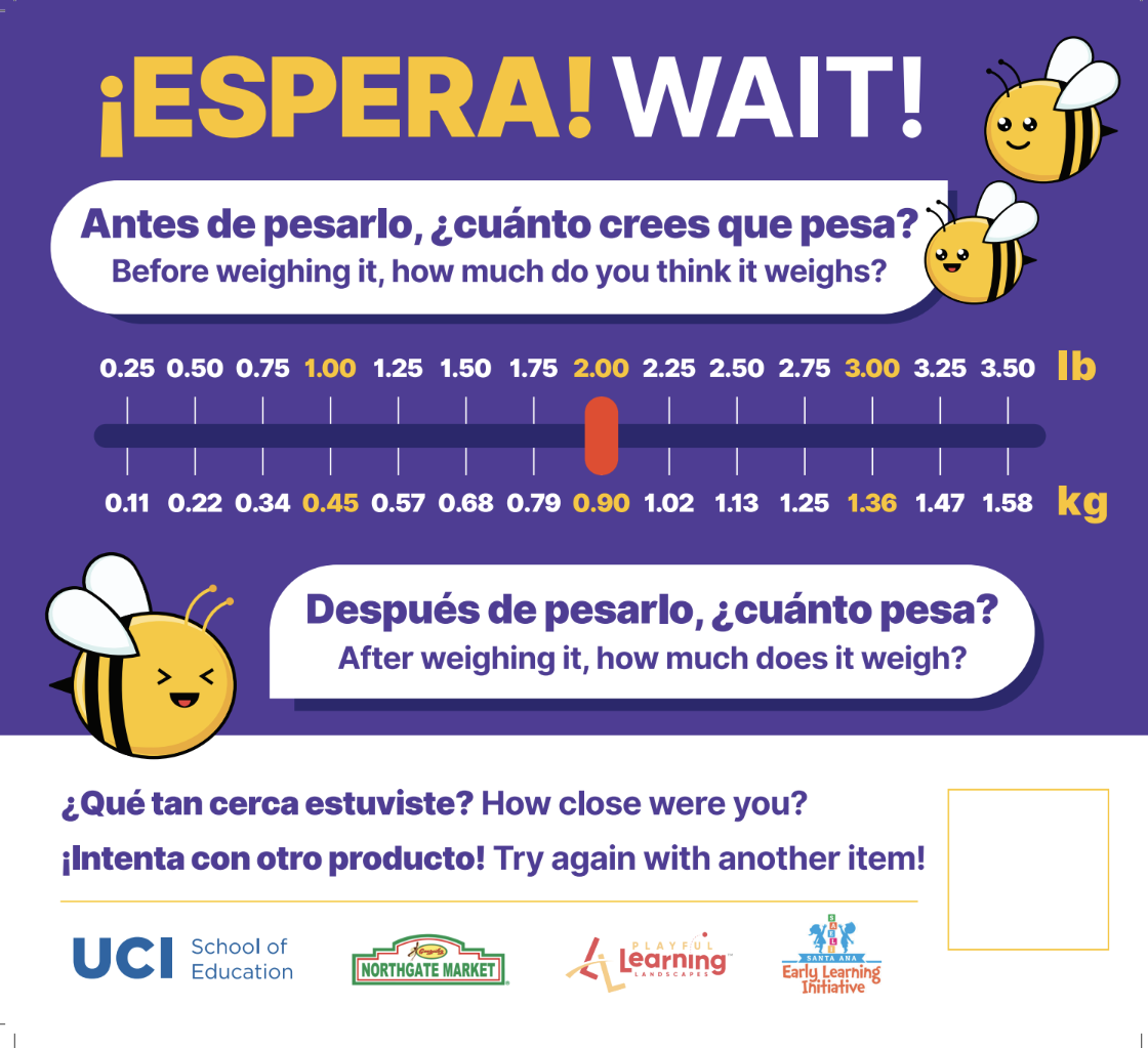 As part of the Playful Learning initiative in Santa Ana, Supermarket Speak at Northgate Market transforms everyday grocery shopping into an opportunity for STEM exploration. Playful prompts placed throughout the store encourage children and caregivers to engage with math and science concepts while navigating aisles, selecting produce, and comparing items.
