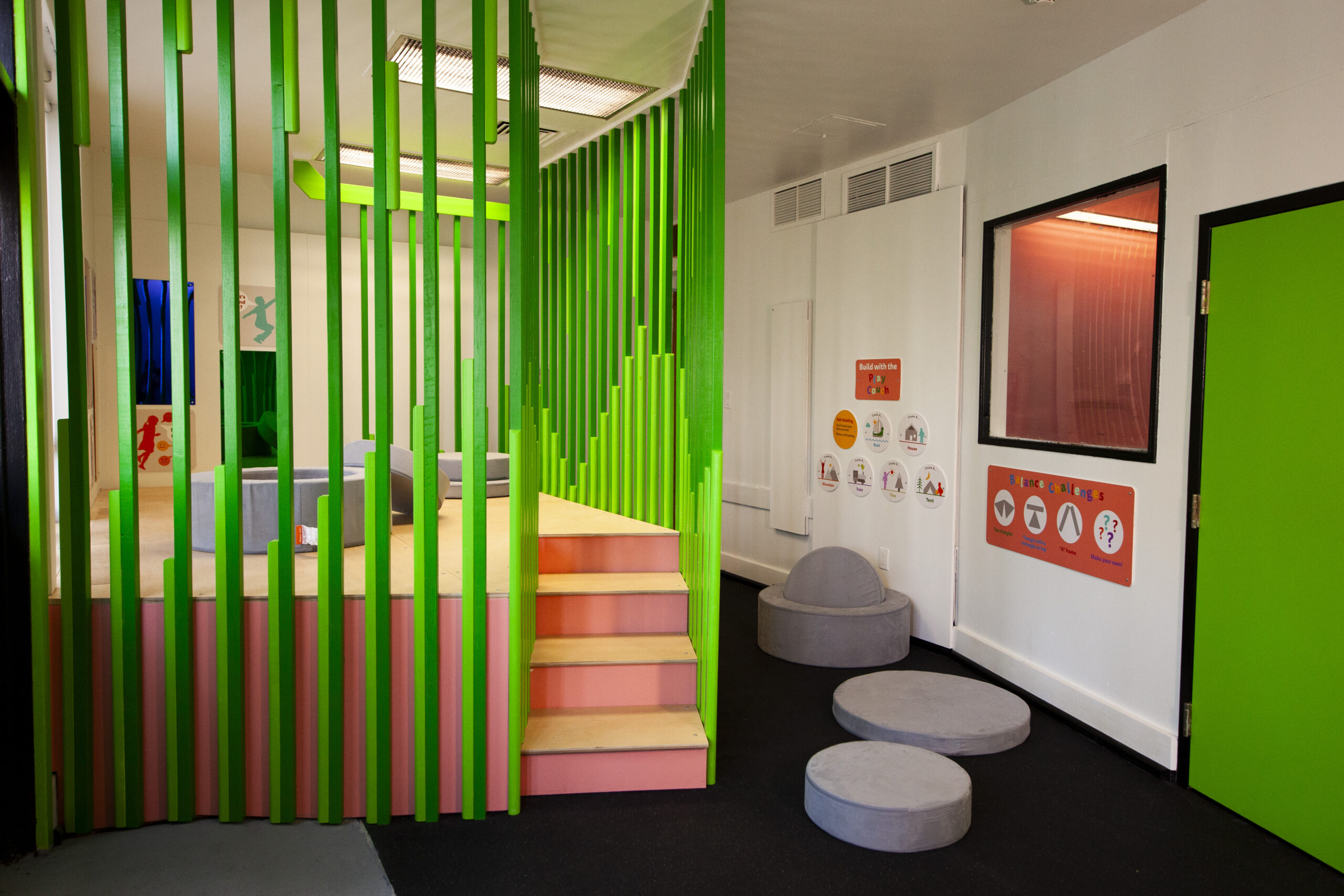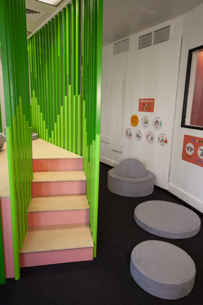 Through open-ended building and shared design challenges, the space supports collaboration as families plan, negotiate, and problem-solve together. The fort-building experience also fosters creative innovation, inviting children to imagine new structures, invent stories within their spaces, and experiment with different solutions. By centering flexible materials and child-led design, the installation transforms everyday play into meaningful opportunities for connection and confidence-building.