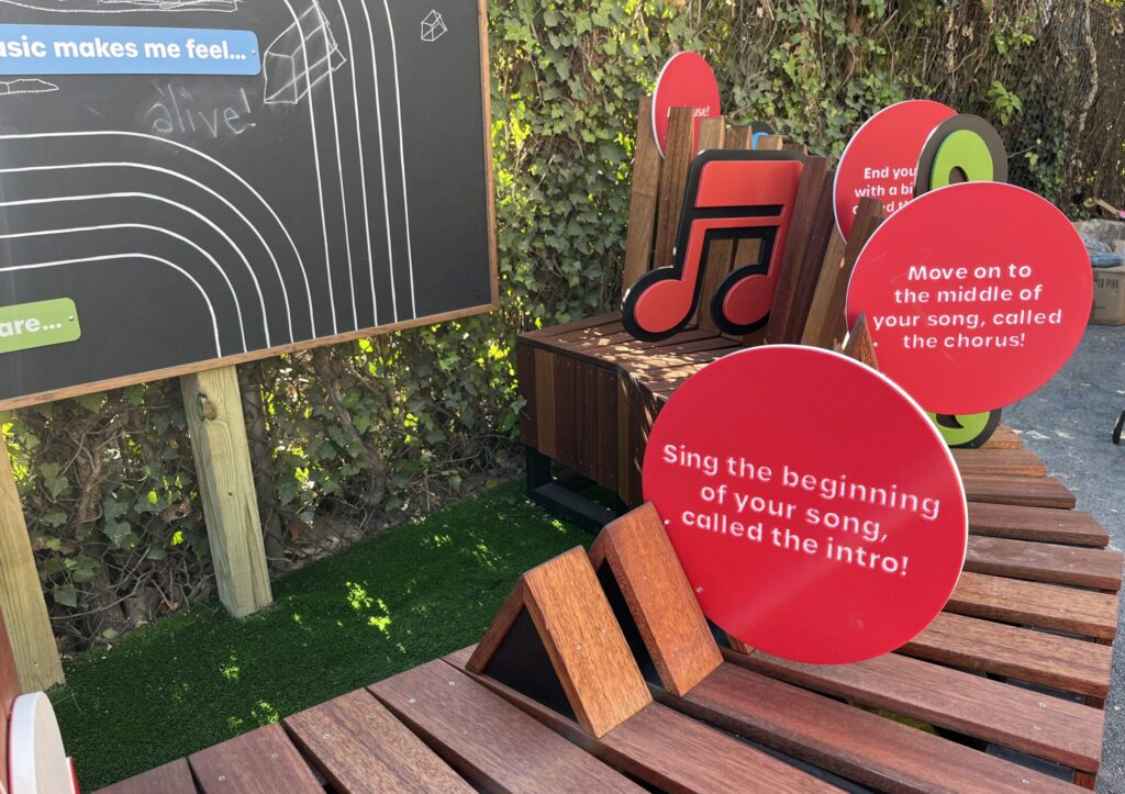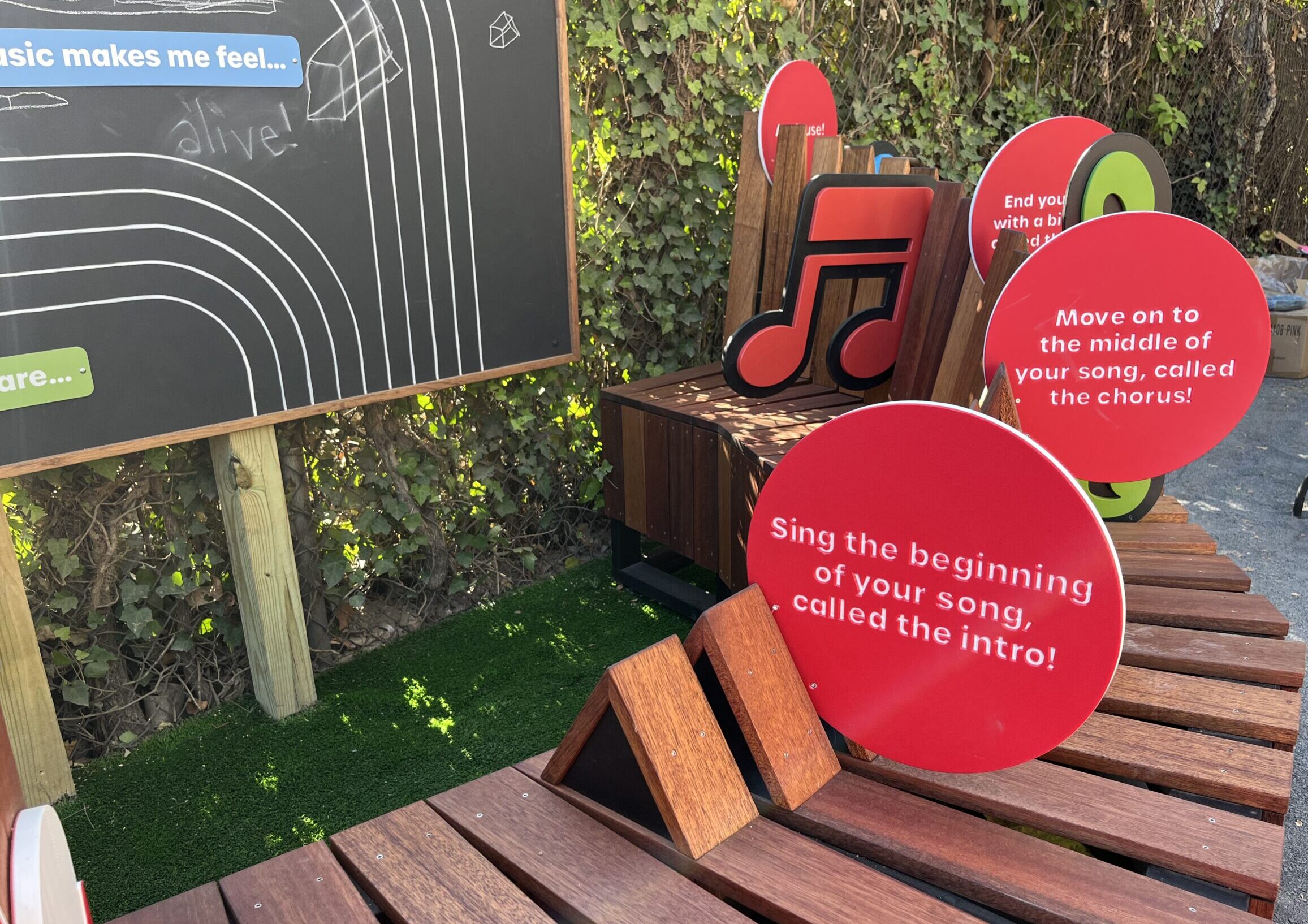 The installation also builds content knowledge in music by introducing foundational concepts such as rhythm, tempo, tone, pattern, and musical structure through hands-on exploration and active engagement.