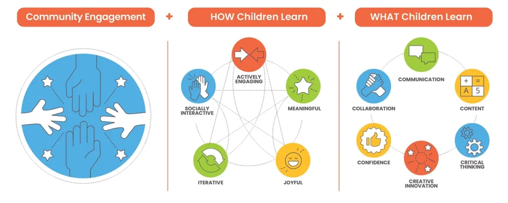 Playful Learning Landscape’s installations are unique because they bridge local, on-the-ground community engagement and co-design with the latest science of child development – HOW children learn and WHAT children need to learn to thrive in the future.